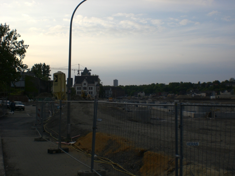 Seit dem Vortag fließt die Emscher wieder als offener Bach über das Gelände des ehemaligen Stahlwerks dicht neben der Seefläche.