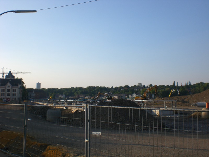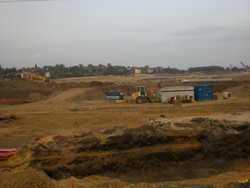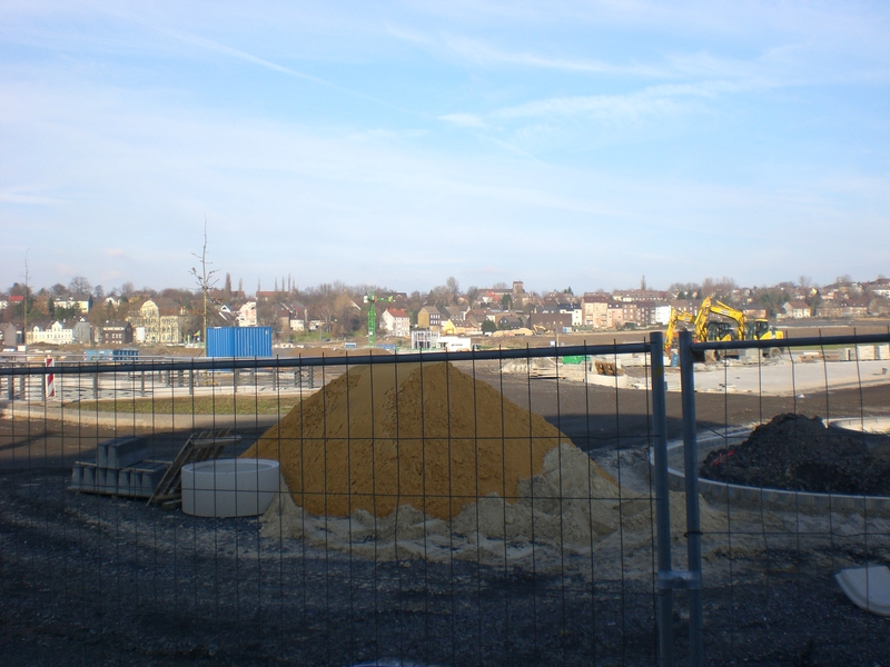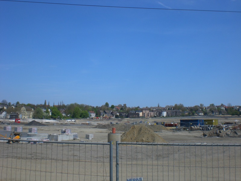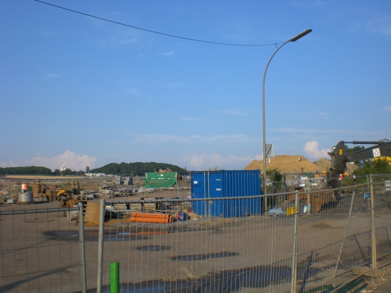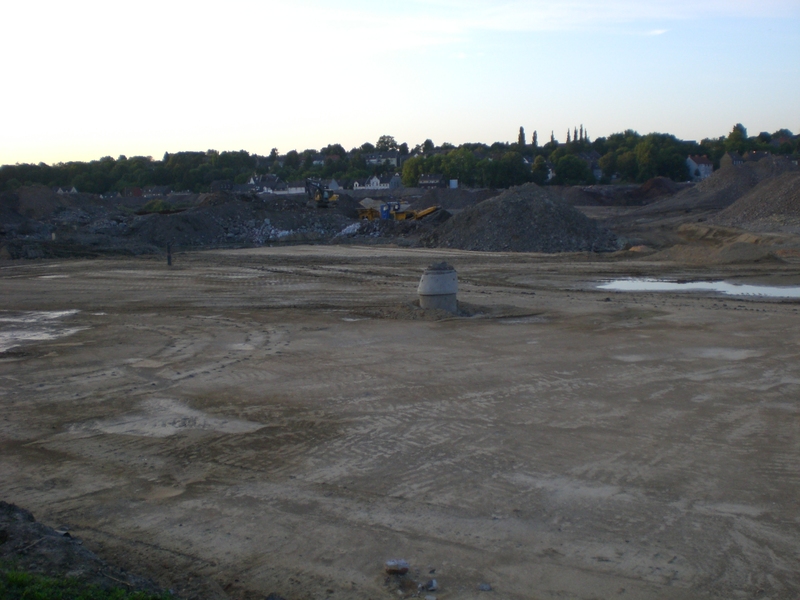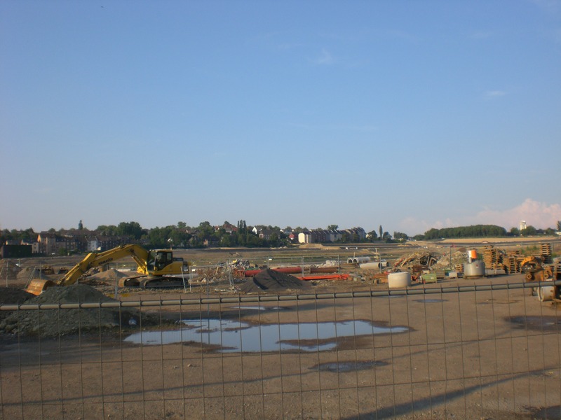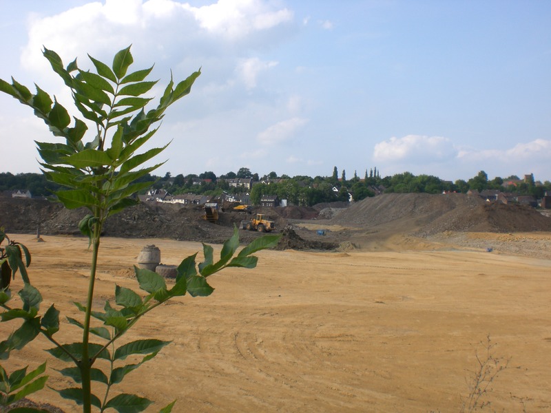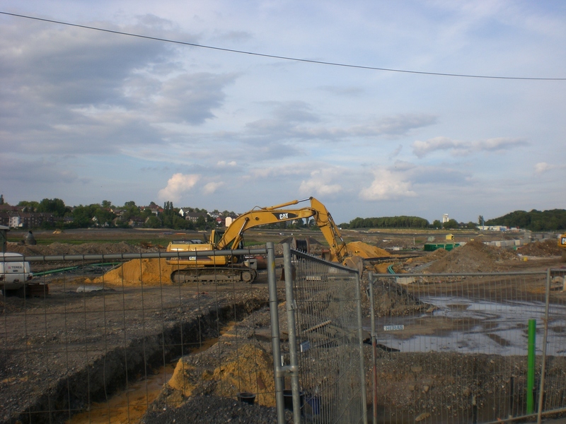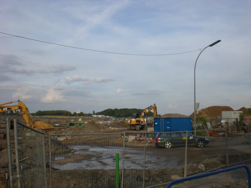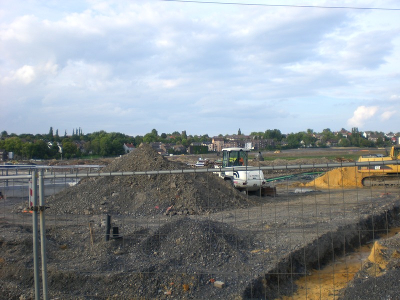 Seit dem Vortag fließt die Emscher wieder als offener Bach über das Gelände des ehemaligen Stahlwerks dicht neben der Seefläche.