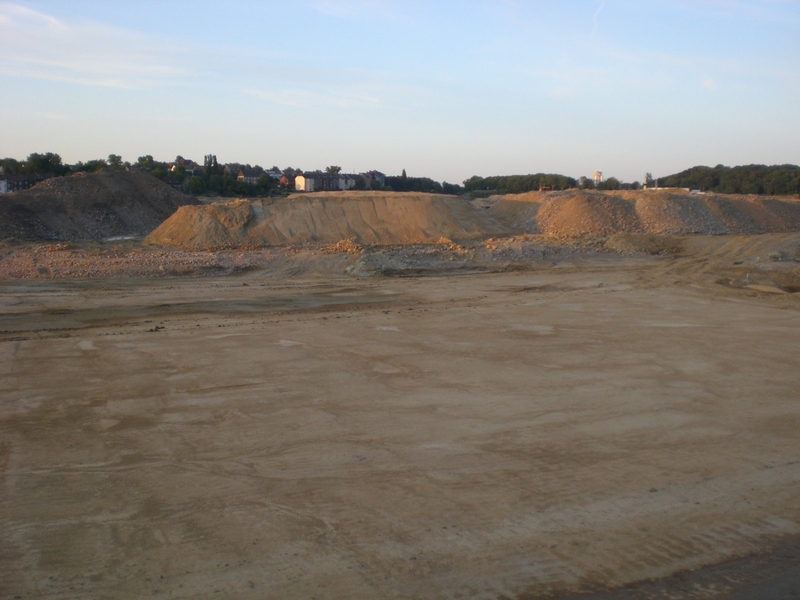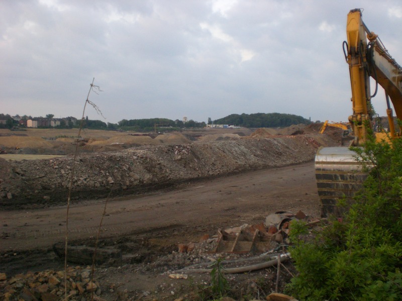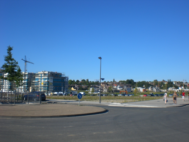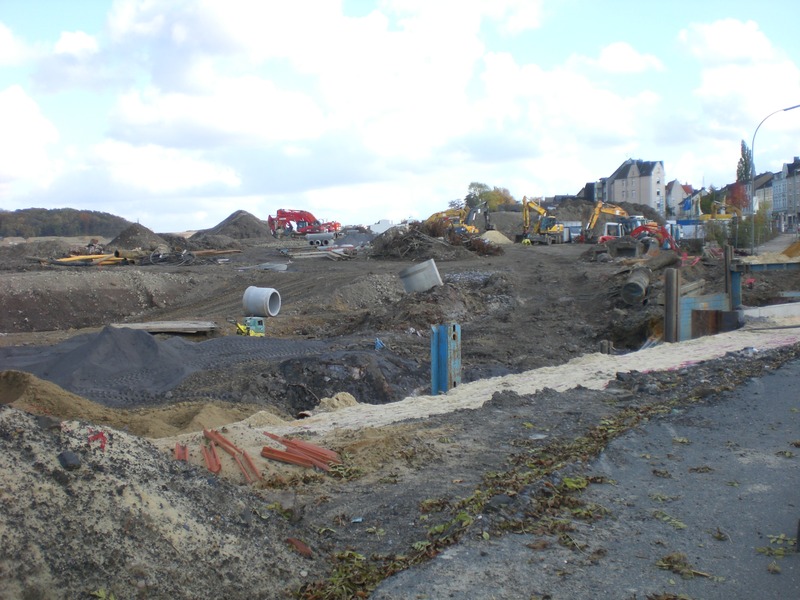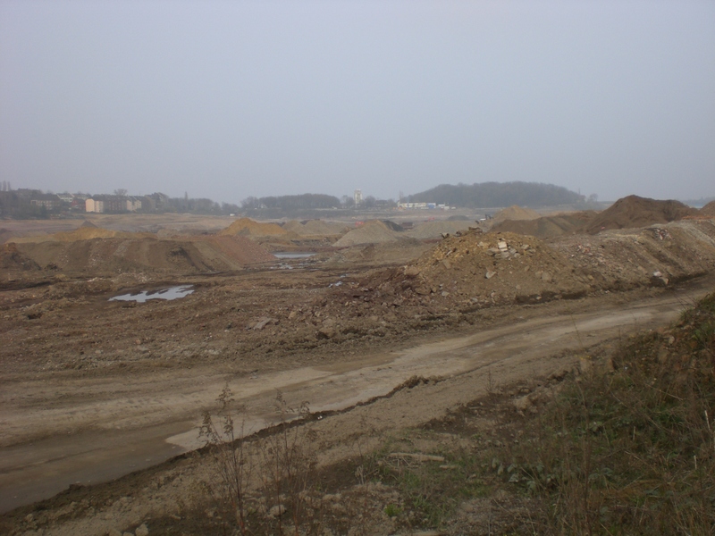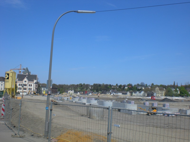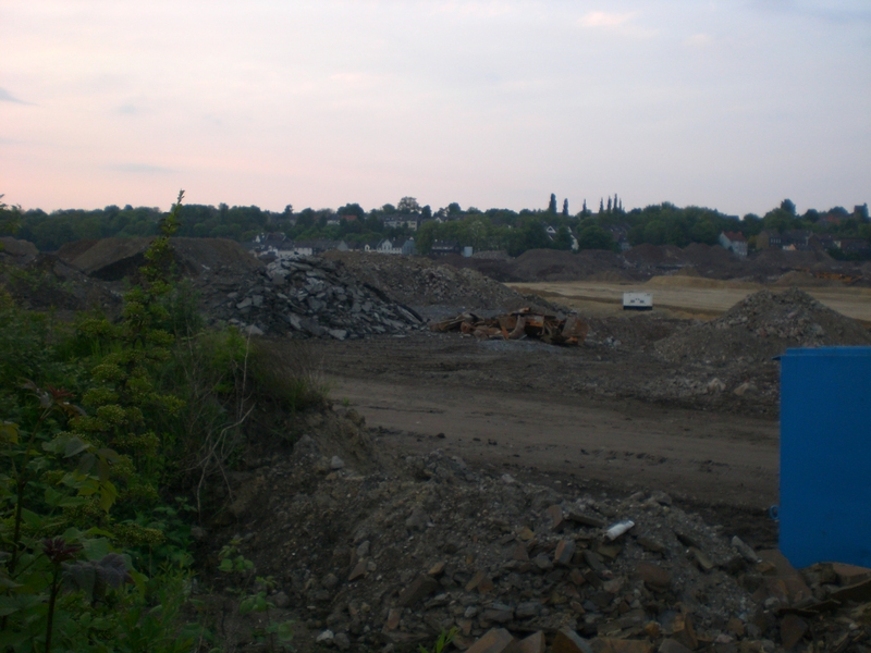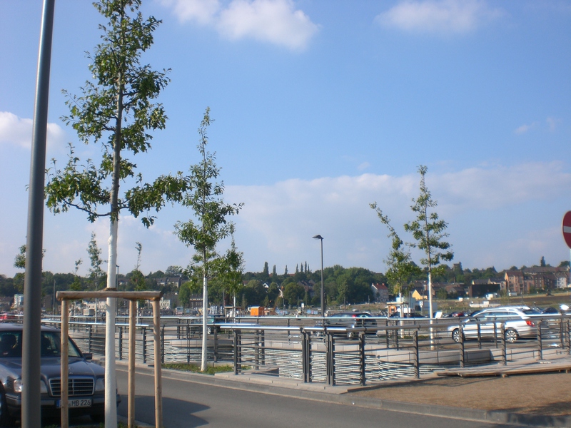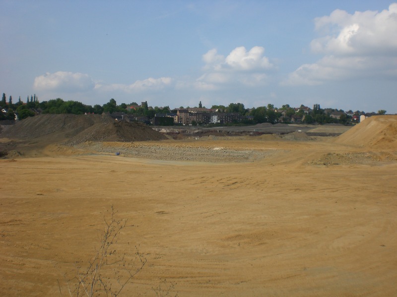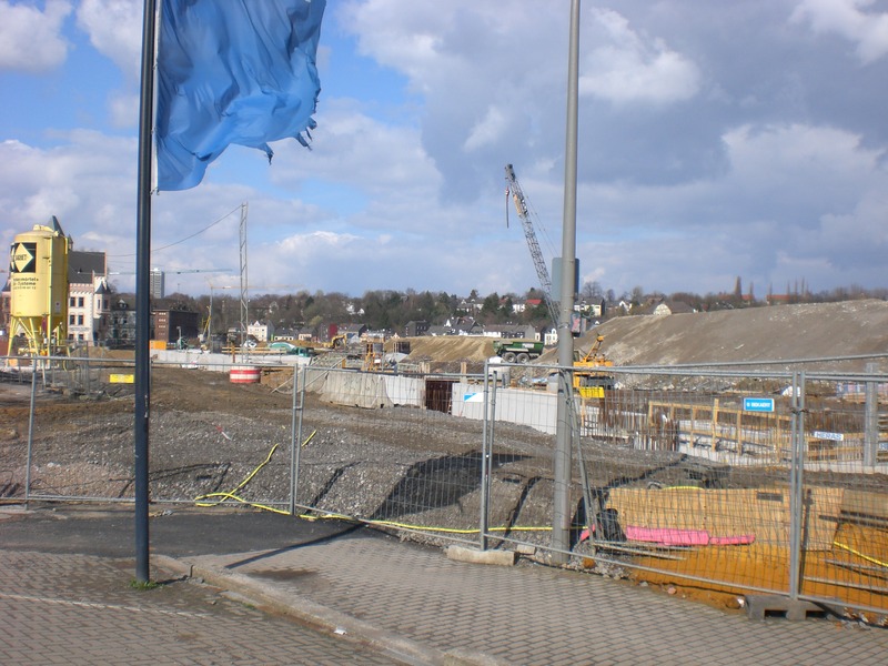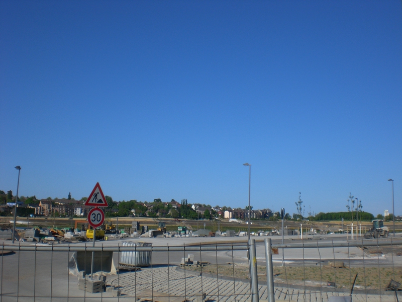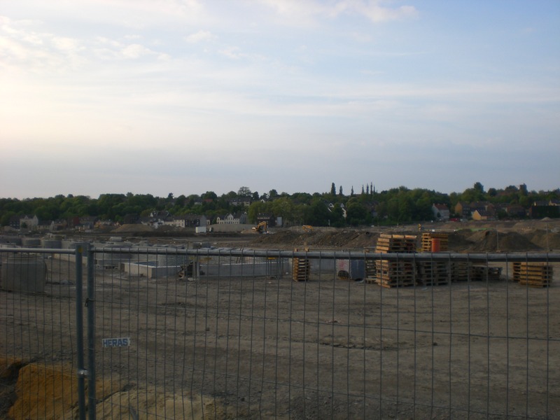 Seit dem Vortag fließt die Emscher wieder als offener Bach über das Gelände des ehemaligen Stahlwerks dicht neben der Seefläche.