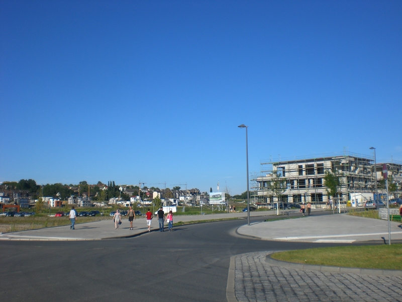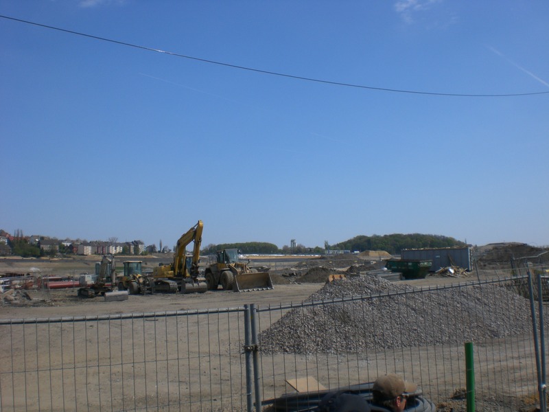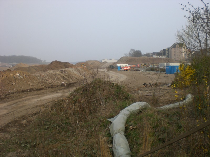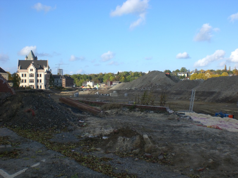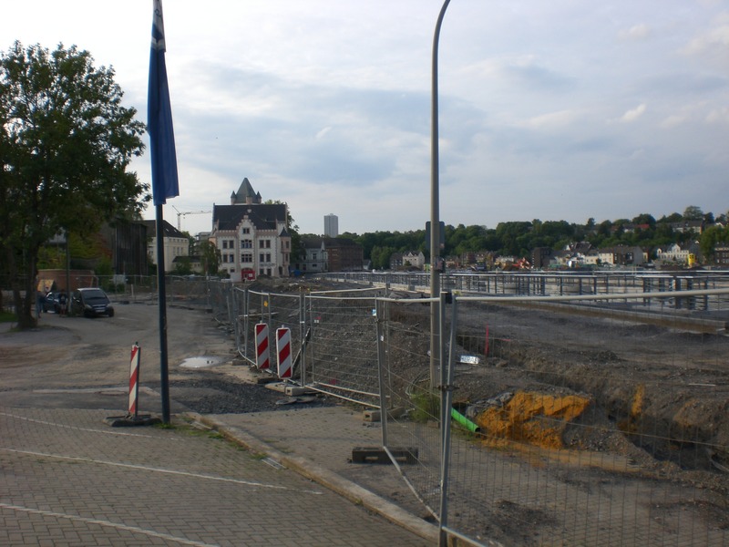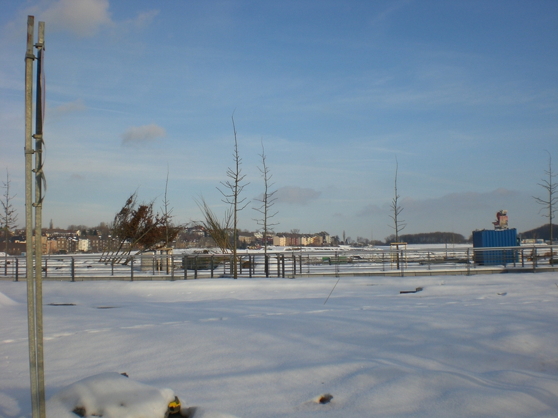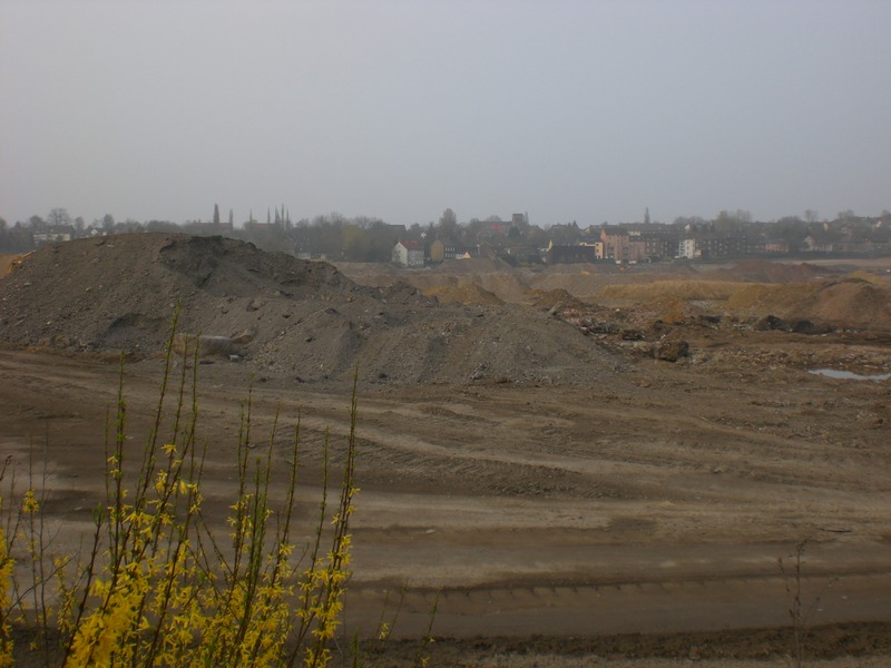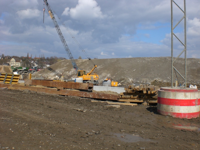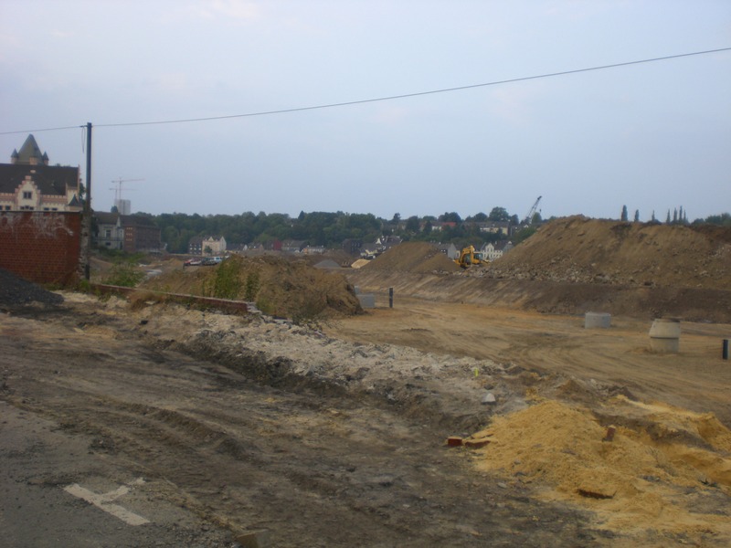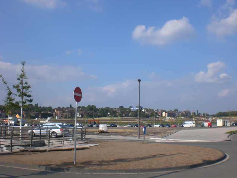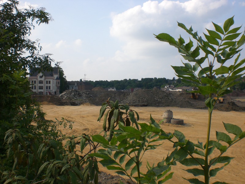 Seit dem Vortag fließt die Emscher wieder als offener Bach über das Gelände des ehemaligen Stahlwerks dicht neben der Seefläche.