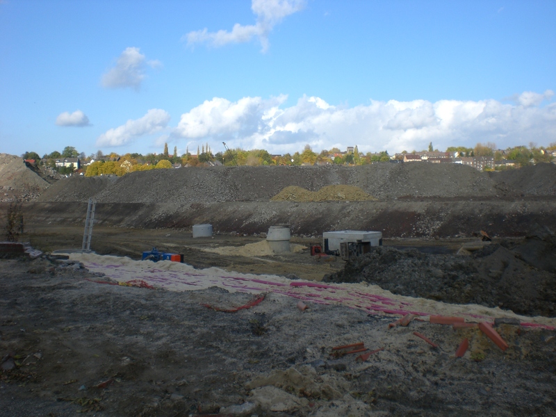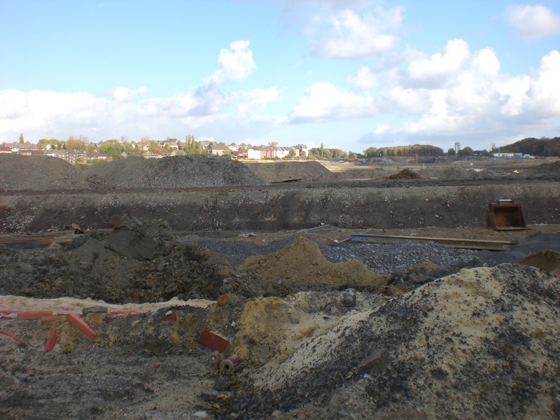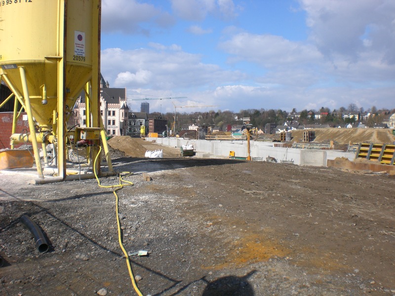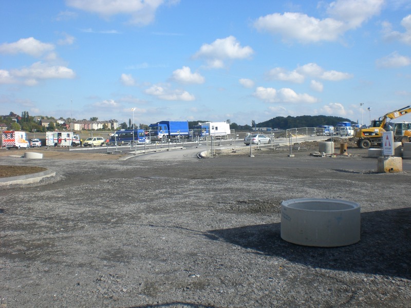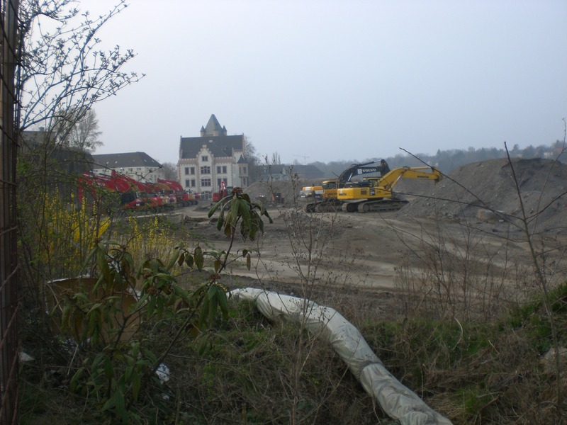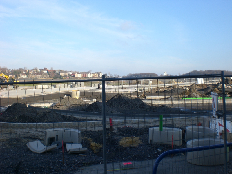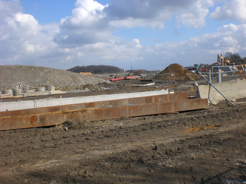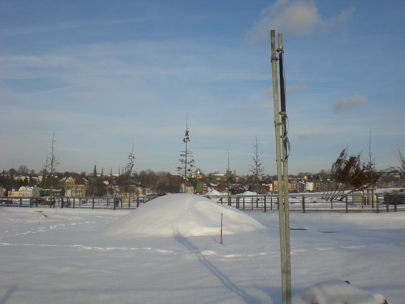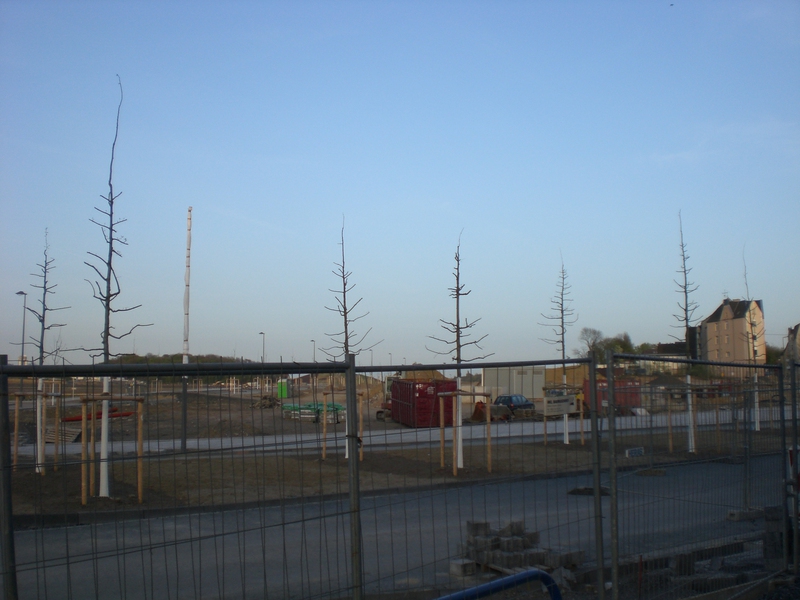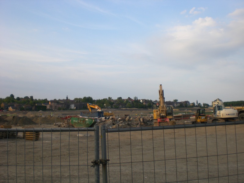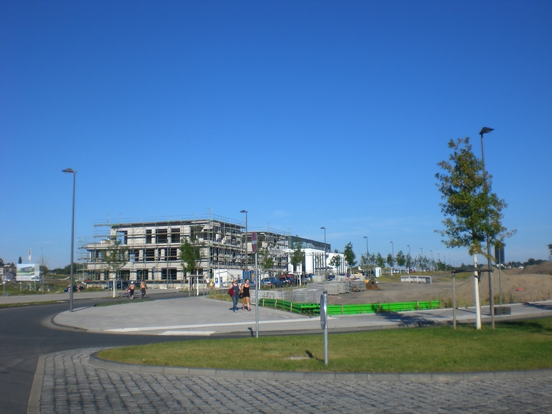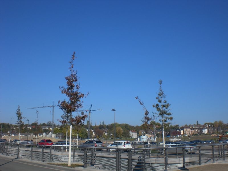 Seit dem Vortag fließt die Emscher wieder als offener Bach über das Gelände des ehemaligen Stahlwerks dicht neben der Seefläche.