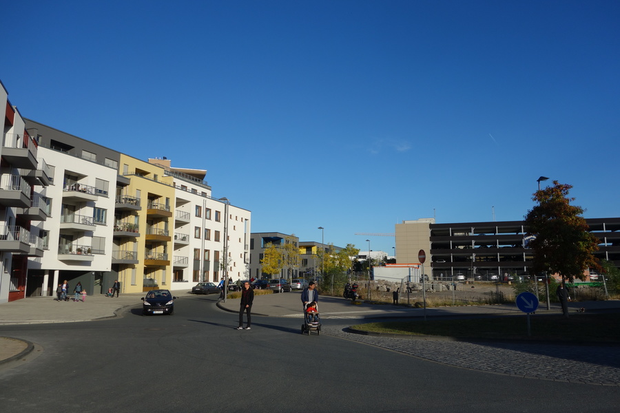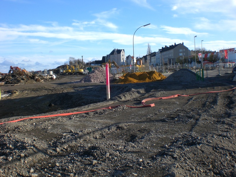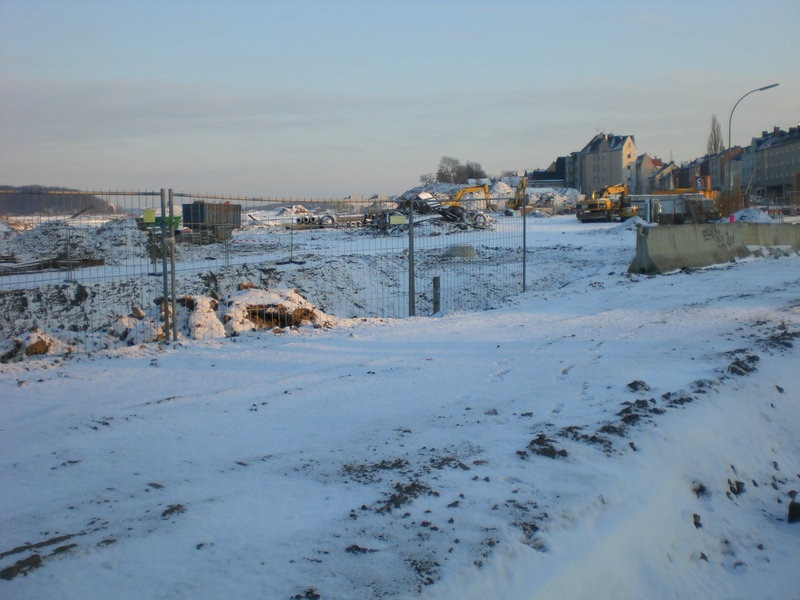 Auf der Hermannstraße zwischen dem "Cabaret Queue" und dem Baumarkt