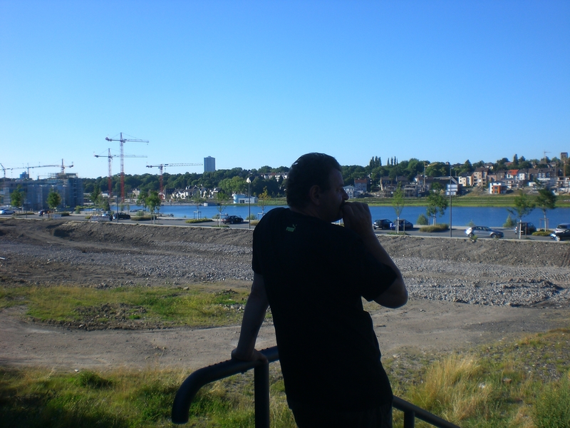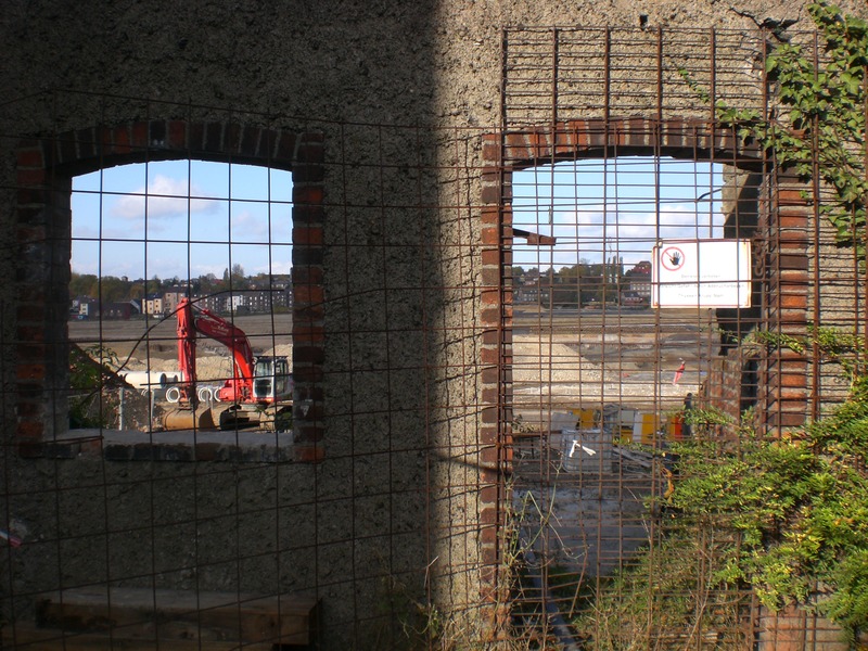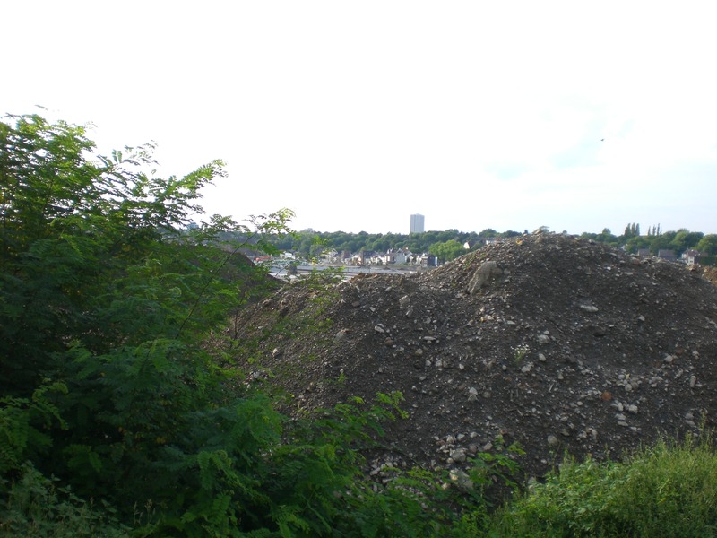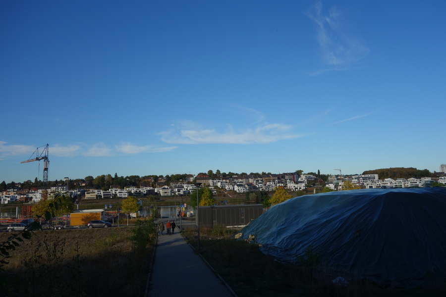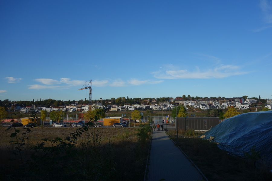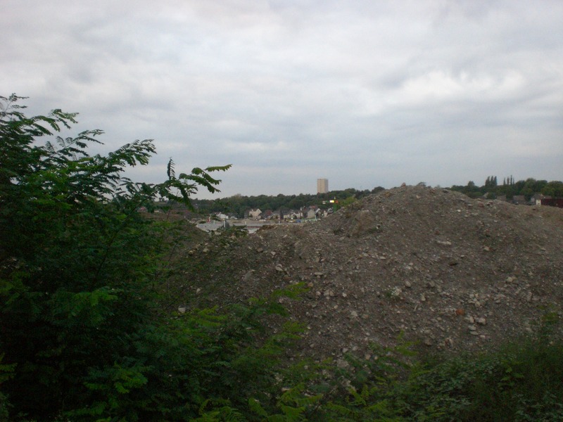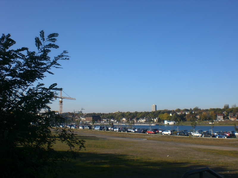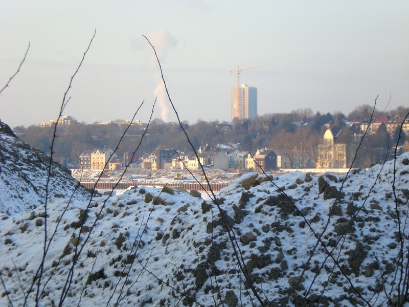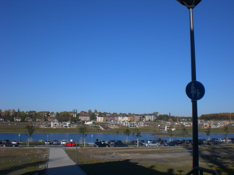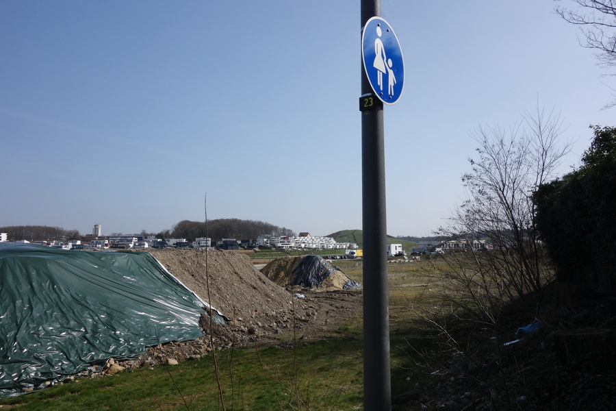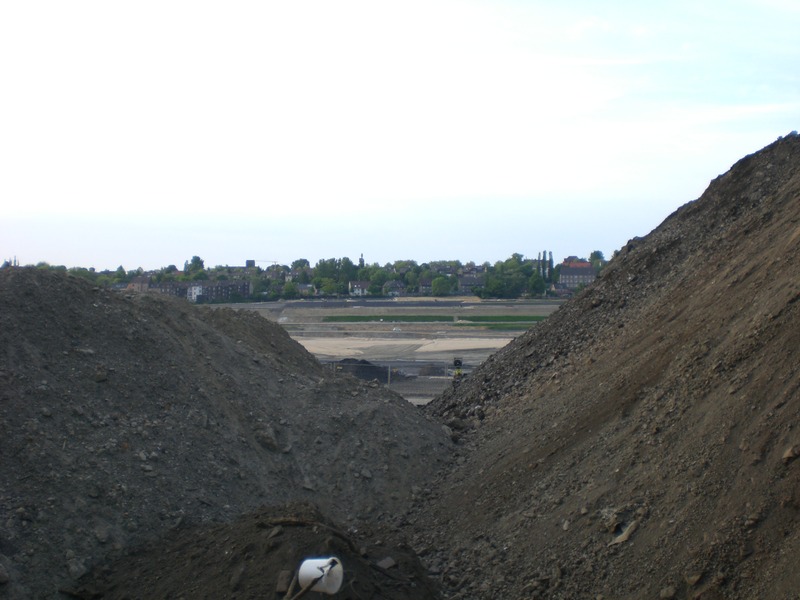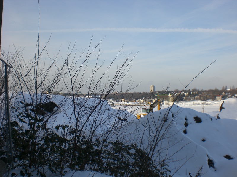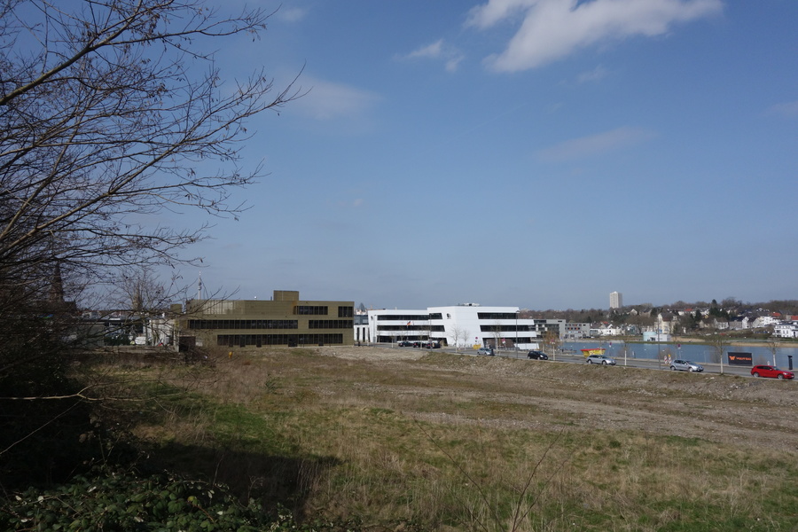 Seit dem Vortag fließt die Emscher wieder als offener Bach über das Gelände des ehemaligen Stahlwerks dicht neben der Seefläche.