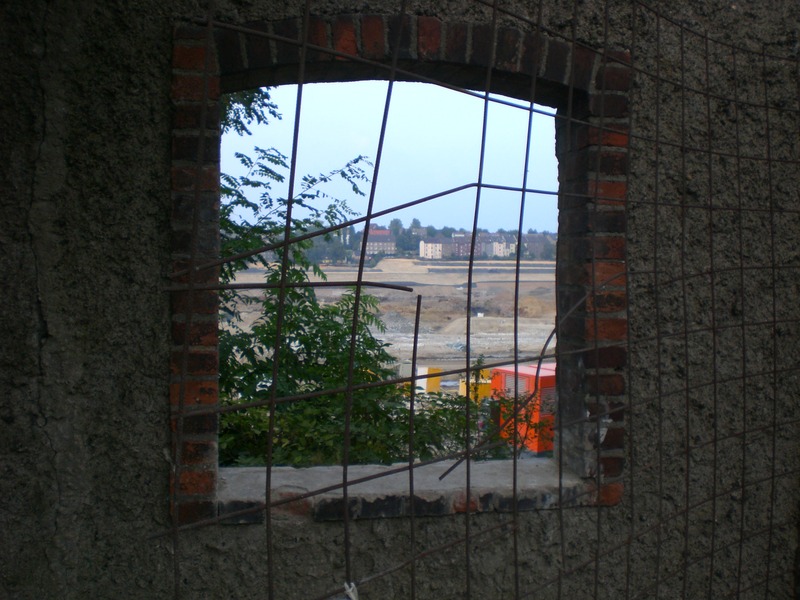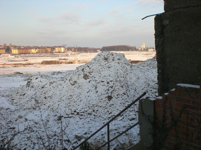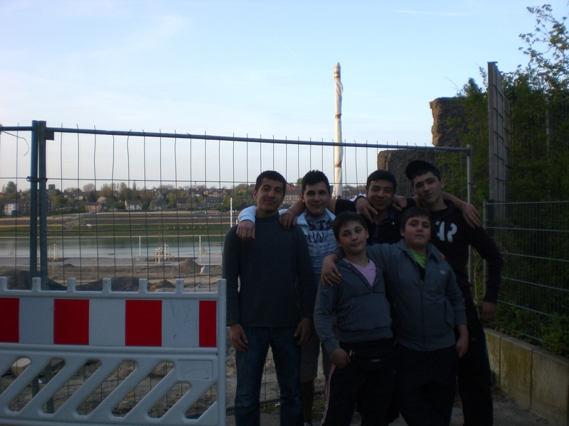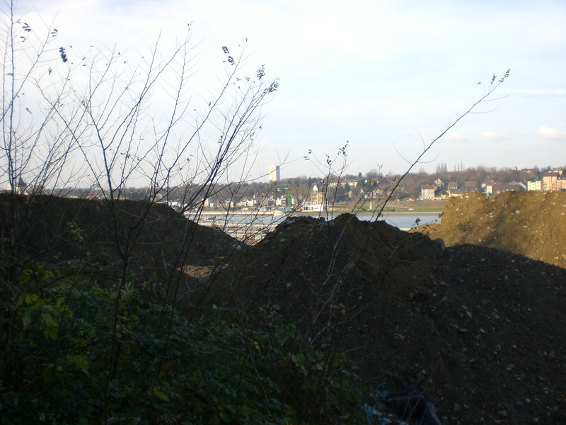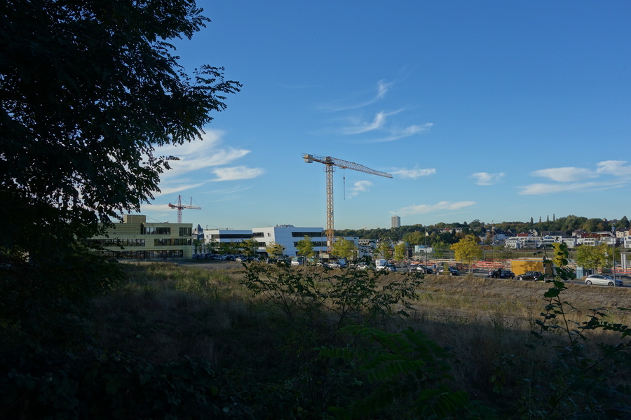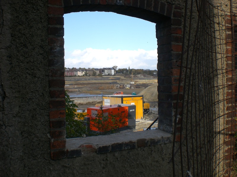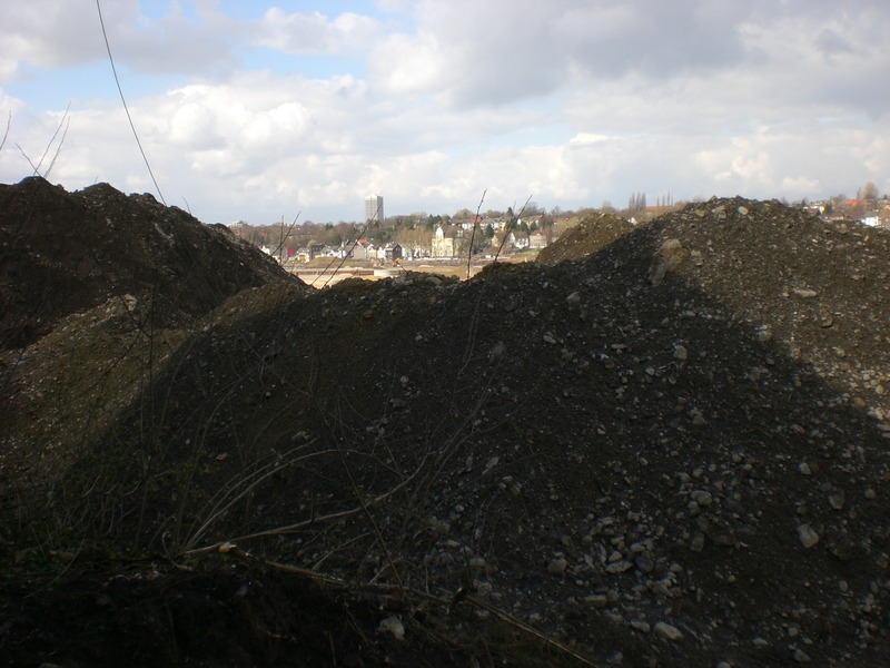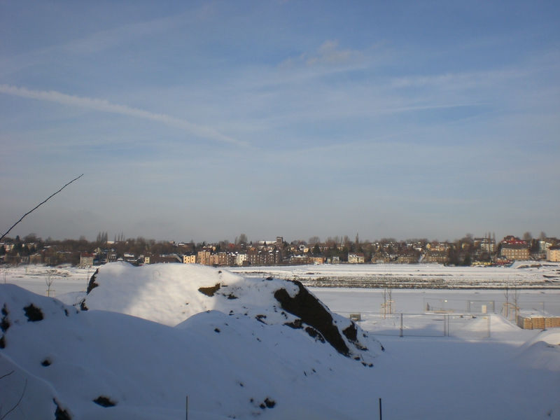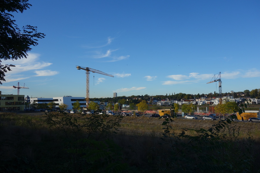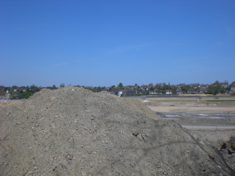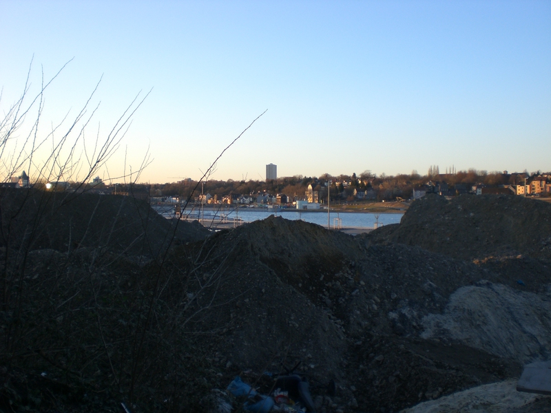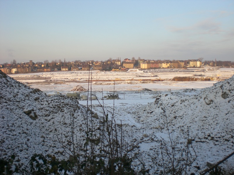 Seit dem Vortag fließt die Emscher wieder als offener Bach über das Gelände des ehemaligen Stahlwerks dicht neben der Seefläche.